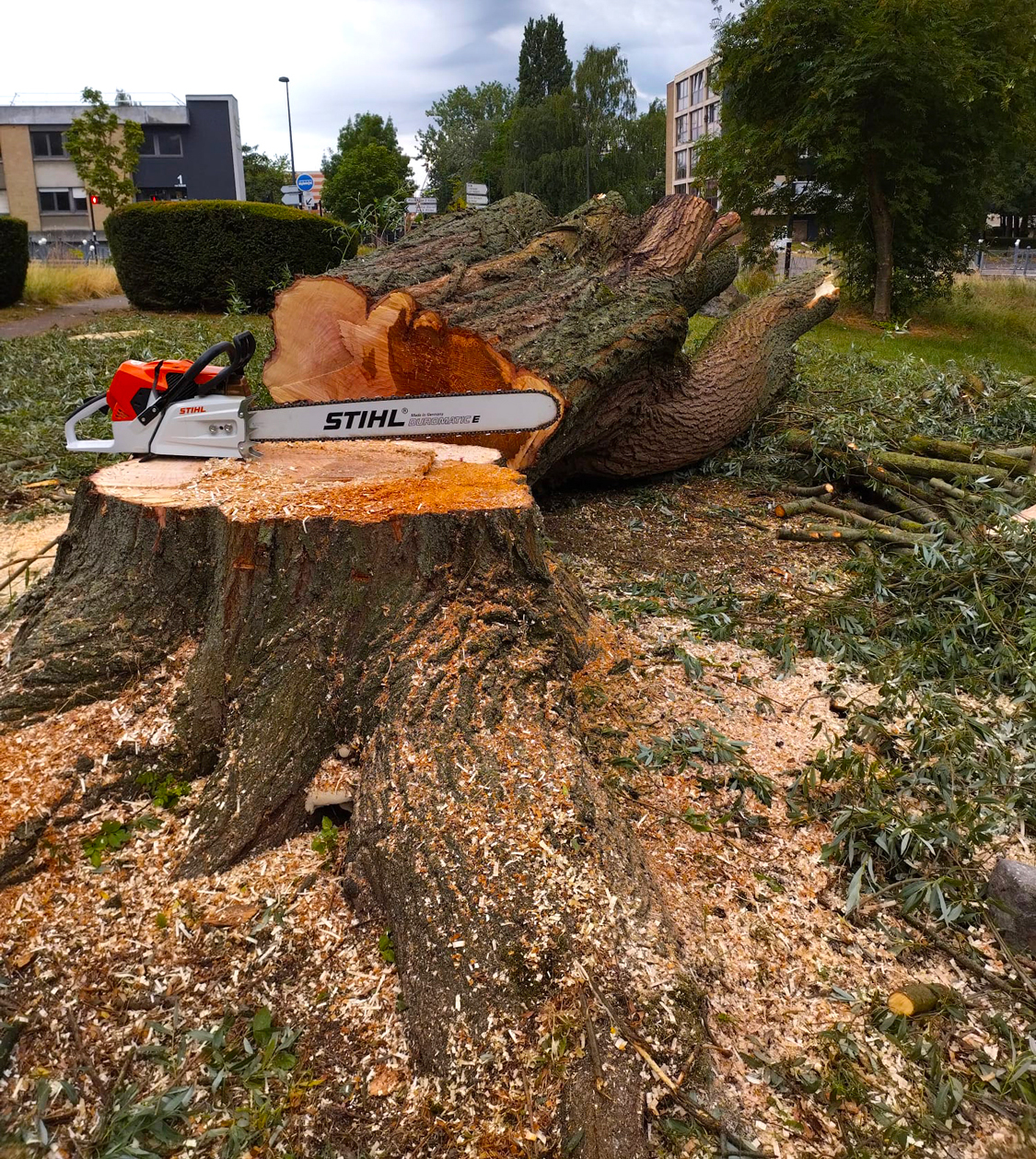 Notre service dessouchage / rognage de souche et carottage permet de supprimer sur une profondeur donnée la souche et les racines restantes suite à un abattage.
